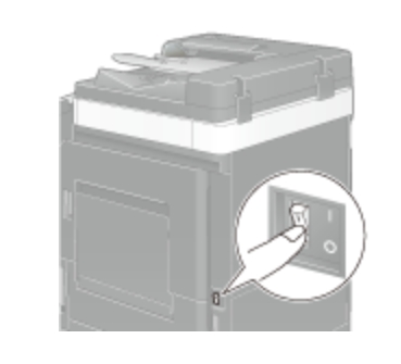 Кнопка расположена с правой стороны МФУ, у задней стенки за лотком ручной подачи бумаги