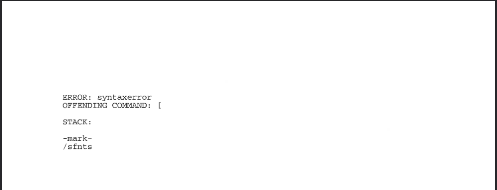 syntaxerror offending command: [ STACK: -mark- /sfnts