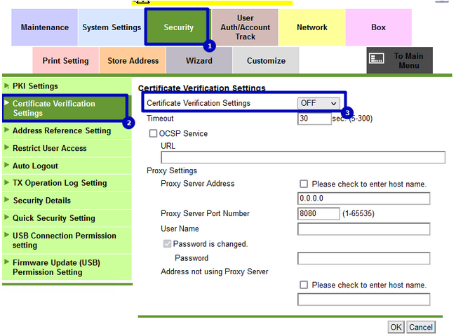 В веб-интерфейсе, в режиме Администратора, Security->Certificate Verification Setting, Certificate Verification Settings выставить OFF